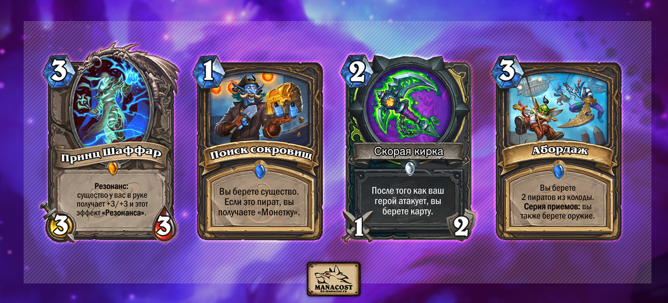 Единственная и главная задумка Шаффар Разбойника очень проста. Вы должны скомбинировать резонанс легендарки с существом, которое призывает само себя. В главной роли здесь выступает Буканьер-торгаш, но некоторые сборки дополнительно используют Азеритового узника. Поскольку на стол будет призвана копия существа, резонанс, полученный им от Шаффара, перенесется на копию — то есть удвоится. Если удвоенный резонанс снова попадет на существо с копией, резонансов станет уже 4 — и так далее.