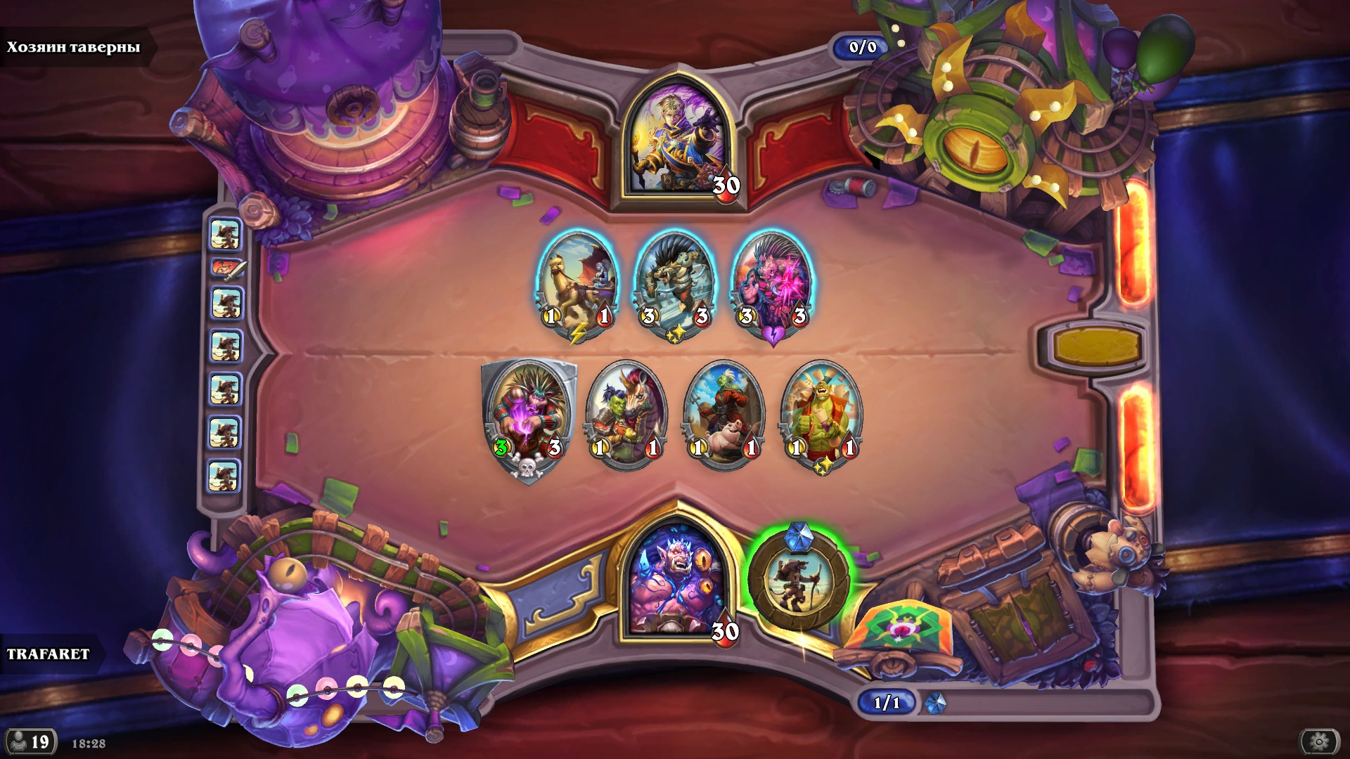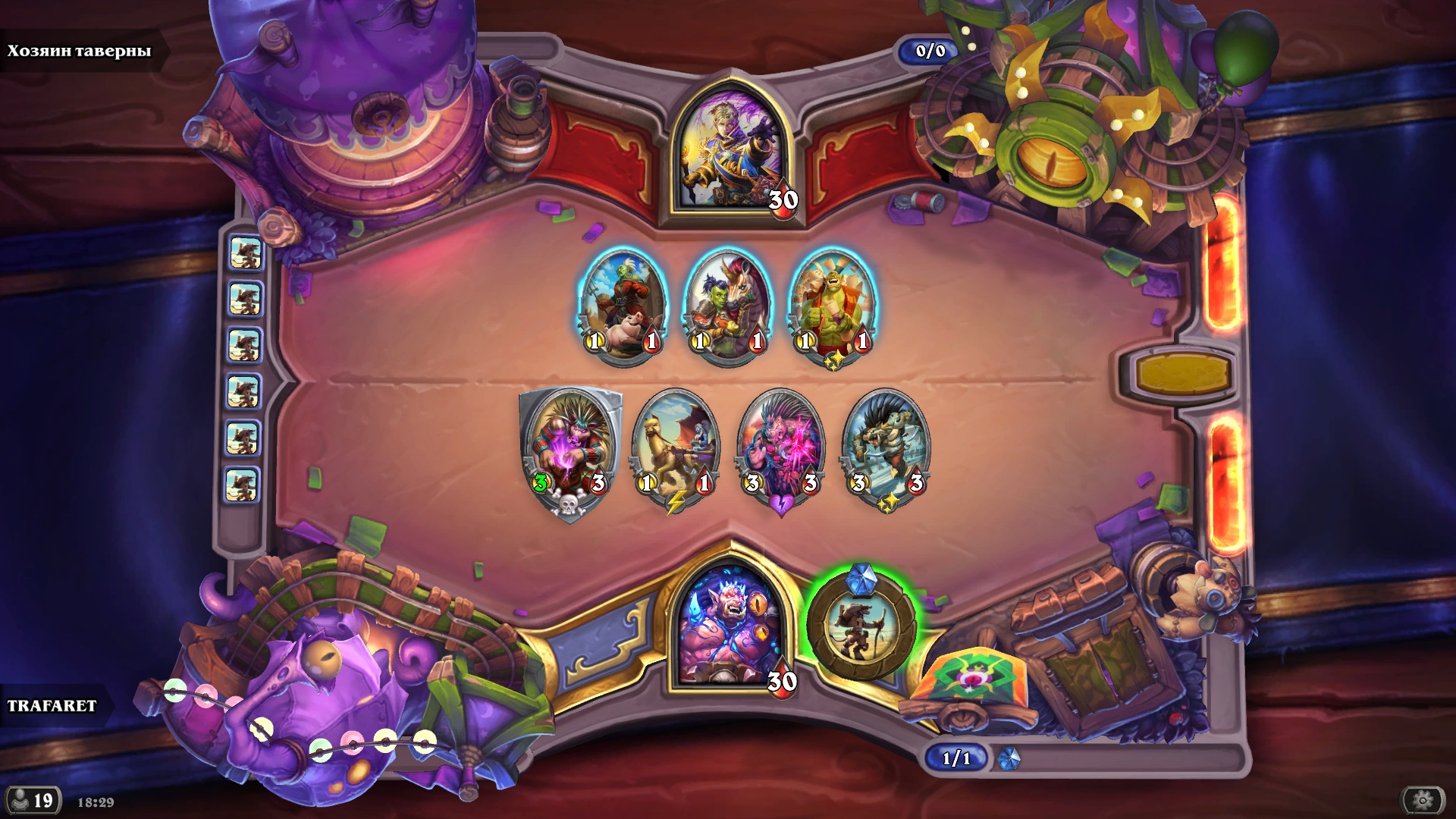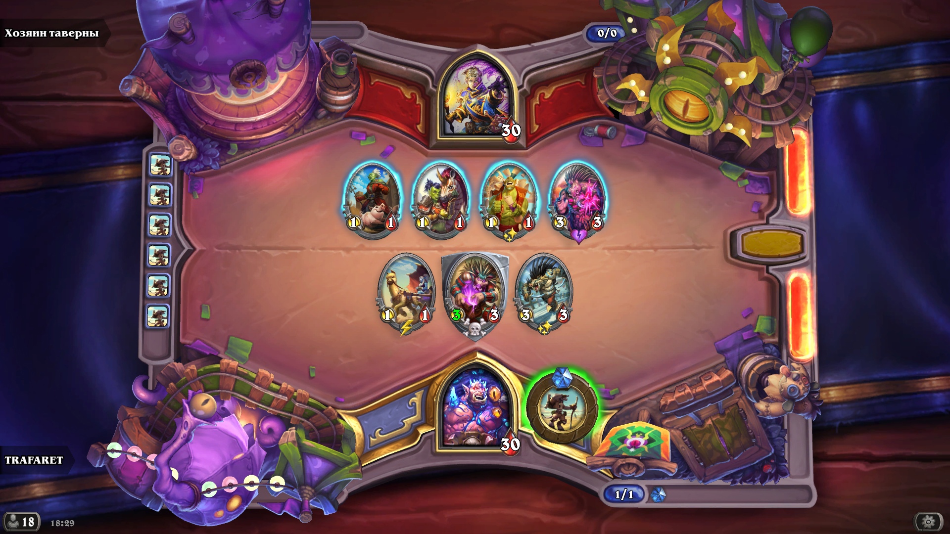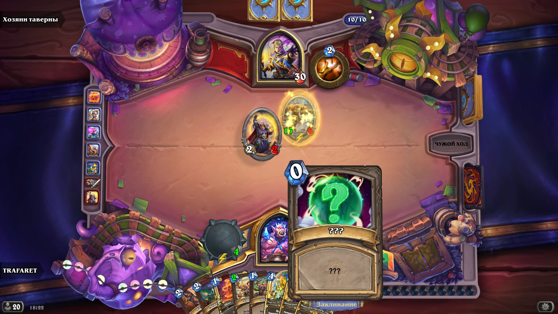 Начинаем игру с Хозяином Таверны за Друида и разыгрываем в один ход