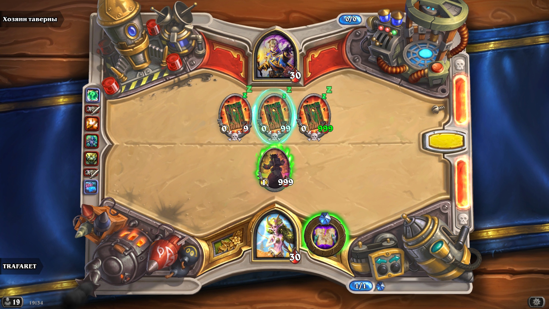 Начинаем игру с Хозяином Таверны за Охотника и разыгрываем в один ход: