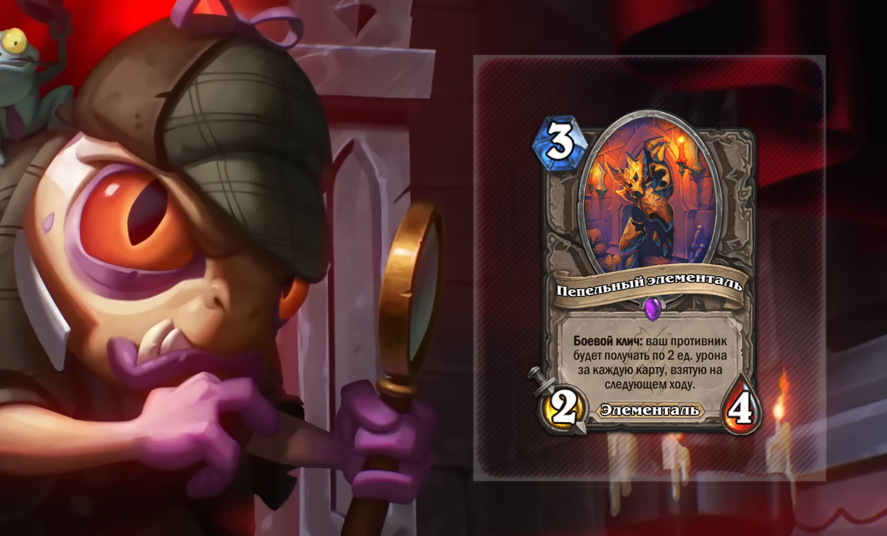 Интересный третий дроп, который может стать ответом на миракл ходы оппонента, если они подразумевают большое количество добора. В первую очередь добором славятся Разбойник, Друид и Охотник на демонов — эта тройка может перебрать за ход чуть ли не половину колоды. Пепельный элементаль не остановит их напрямую, но может нанести даже летальный урон, если оппонент не будет осторожен.