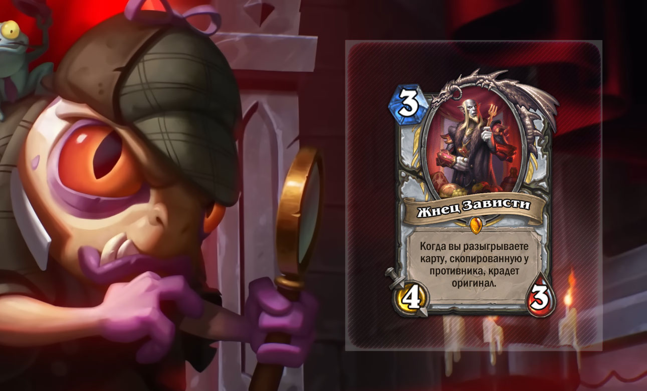 Выше мы обсуждали только нейтральные карты, но Жнец Зависти и синергии воровства Жреца в этом дополнении в целом слишком интересны, чтобы не отметить их. С помощью Жнеца Зависти Жрец сможет украсть ключевые карты и способы победы противника, как это делают и многие описанные выше карты.