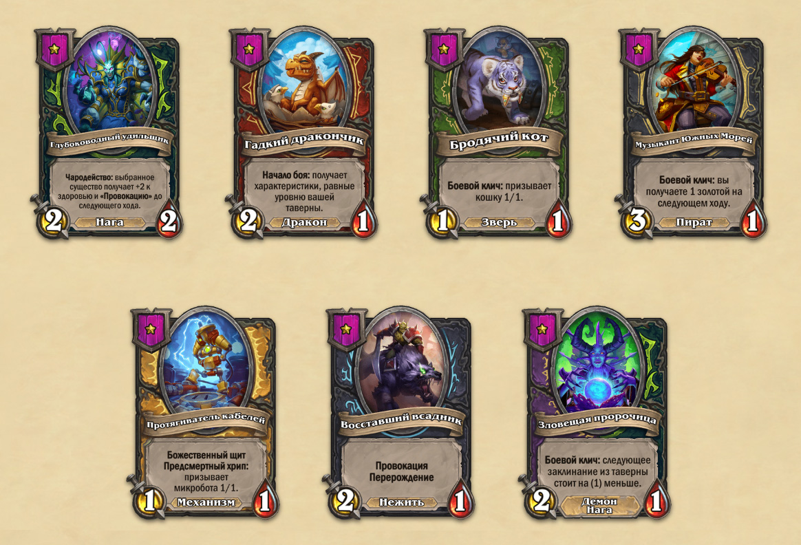 Сюда также относятся экономически выгодные существа, которые помогут купить двух существ или апнуть таверну на 3-м ходу без продажи всего стола. Не забываем, что Музыканта Южных Морей нужно играть на 2-м ходу.