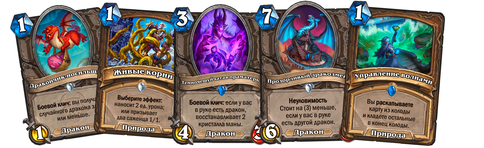 Из Токен Друида убираются все легендарки, и остаются только сильные токен-опции и драконы. В сборку также можно добавить бесплатного Серокронона, чтобы сделать ее более крепкой на столе. Архетип, конечно, теряет в эффективности, но всё же это довольно сильная и интересная колода.