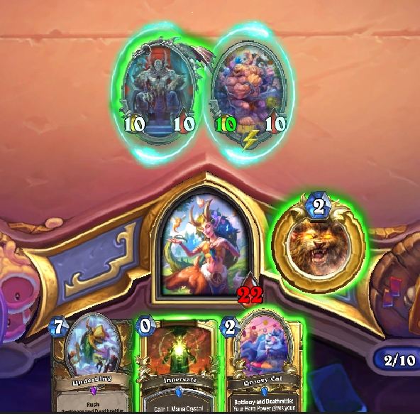 Новая фишка Друида в Фестивале легенд — синергии с силой героя. Свободный дух и Дискокот делают силу героя намного сильнее. В результате вы можете разогнать ее до +5 +5 бонусов, что очень много для карты за 2 маны — и помогает как в защите, так и в нападении. Свободного духа и Дискокота сможет достать из колоды Умиротворенный трубач. Другие синергии с силой героя — Глубокая рана, Агрессивная реклама и Зов Хмареклык. К тому же вы часто будете играть силу героя с АнубРеканом, чтобы получить дополнительную броню на розыгрыш тяжелых существ.