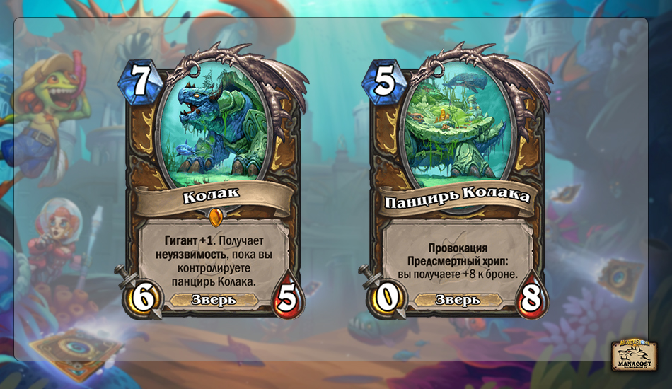 Друиды часто играют тяжелых существ, потому что у них есть разгон по мане и другие синергии для биг колод. Только поэтому Колак выглядит многообещающе. К тому же у легендарки отличный защитный эффект: тяжелая провокация, бонус к броне, хорошие характеристики самого Колака.