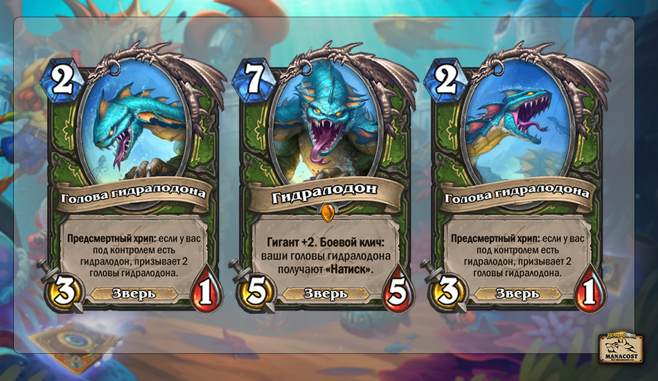 Охотники реже обращаются к тяжелым существам, но Гидралодон может изменить ситуацию. Важно, что это зверь — у класса много синергий с этим типом существ. Даже просто поставить эту легендарку в темп за 7 маны — очень сильный ход, потому что головы тут же атакуют и активируют свой предсмертный хрип. В результате на столе оказывается много характеристик, от которых не так уж легко избавиться.