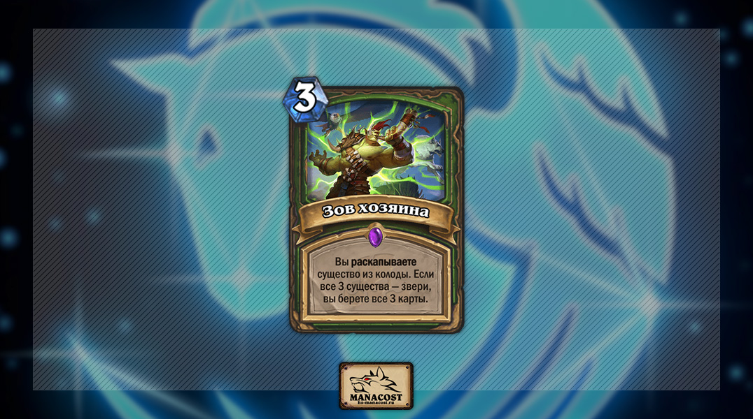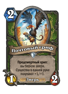 Еще один вариант добора для Охотника, и тоже очень хороший. В свое время карта была ключевой для класса. Зов хозяина хорошо подойдет Бафф Бист Охотнику, который существует сейчас. Он будет отличной заменой Разборчивому заводчику, который покидает Стандарт. Почтовый гриф — большое подспорье для успеха Зова хозяина. Неприятно только то, что он конфликтует с титаном, но карту вполне могут использовать даже не убирая титана из колоды.