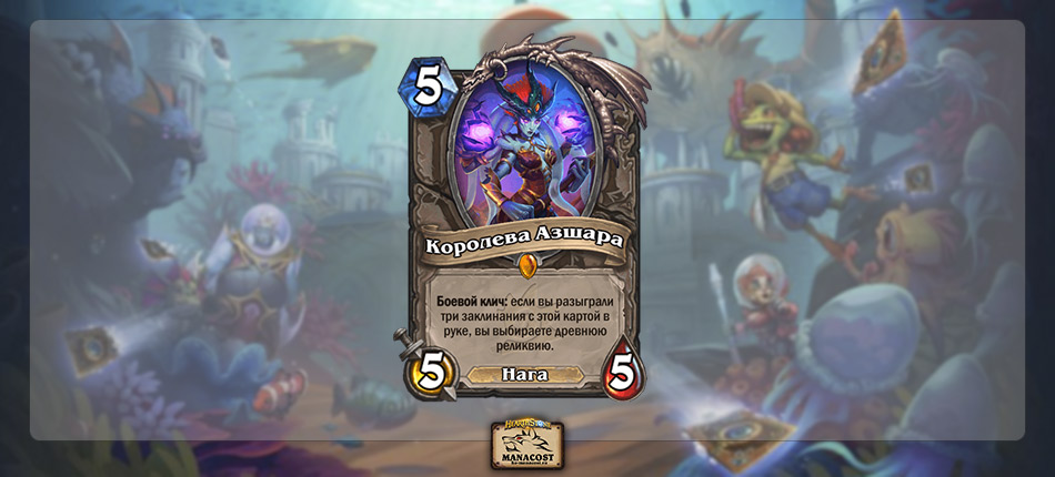 Королева Азшара — гибкая и сильная легендарка, которая встречается в целом ряде колод разных классов. Чаще всего Королеву Азшару играют Друиды, Маги и Шаманы, но ее можно встретить и у Локов, Паладинов, Охотников на демонов и даже Воинов.