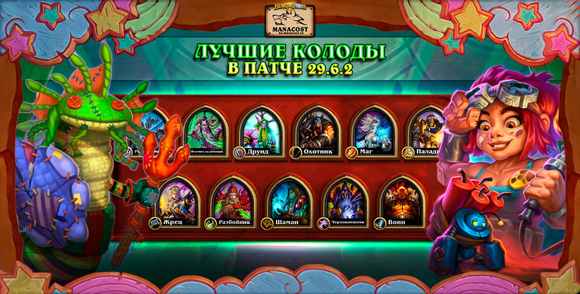 Знакомьтесь с подборкой из 15 самых эффективных колод Стандарта по итогам первых 3 дней патча 29.6.2 по статистике портала hsguru (Алмаз-Легенда, не менее 1500 матчей).