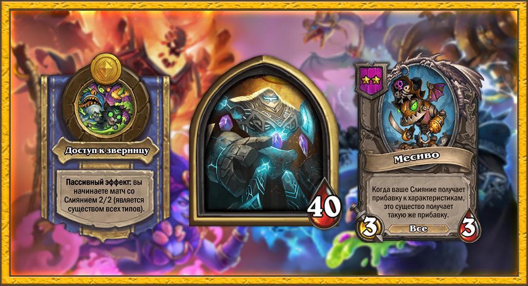 Вновь тир-2 компаньон, которого можно получить очень рано, тем более Смотрителю, который выходит победителем из большинства боев в начале игры. С еще одним существом всех рас Смотритель сможет легко играть любыми бафф стратегиями, реализовывать Бранна Бронзоборода, Рыцаря Клыков Света и все боевые кличи на баффы характеристик. Компаньон будет расти в два раза быстрее обычного Слияния из-за своего особого эффекта, а золотая копия — в 4 раза.