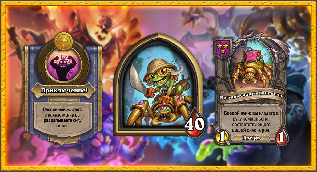 Четвертое преимущество — Могучий скакун Максвелл зверь. В лобби без зверей вы сможете получить Адаптозавров с помощью Верховного друида Хамуула так же, как это делает Зирелла.