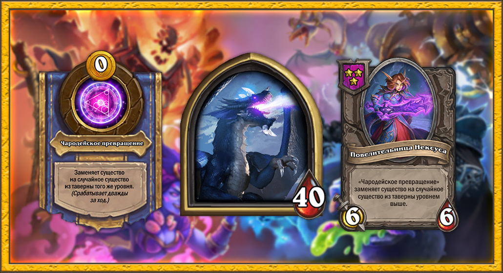 Золотая версия Повелительницы Нексуса улучшает существо сразу на два тира. Кажется, Малигос будет достаточно стабильно фармить тир-6 существ, даже если останется на 4 уровне таверны до конца игры.