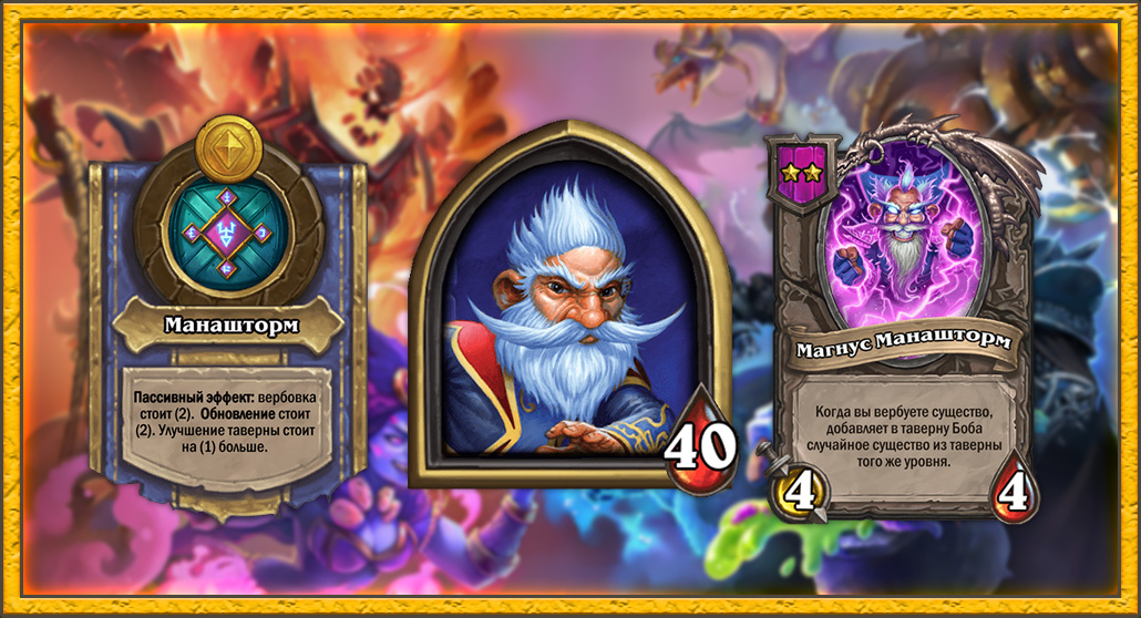 Миллхаус Манашторм и без компаньонов считается тир-1 героем меты. Он крайне силен со старта, так что с высокой вероятностью первым в лобби получит тир-2 компаньона. И этот тир-2 компаньон делает очень многое для героя, который не любит обновлять таверну. Магнус Манашторм силен на любом этапе игры и дает огромное экономическое преимущество. На 6 уровне таверны Миллхаус может скупить чуть ли не все тир-6 угрозы и точно найти несколько копий Адаптозавров и других нужных существ.