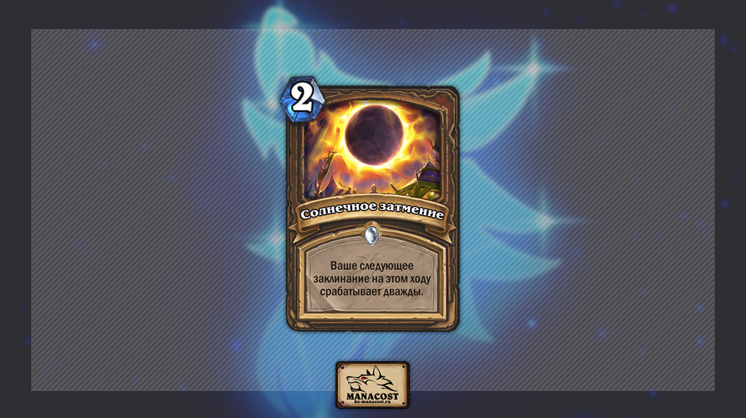 Солнечное затмение — одна из сильнейших вспомогательных карт класса за всю историю игры. Она была актуальна в огромном количестве колод, потому что Друид всегда использует заклинания, и зачастую довольно мощные. Перечислять синергии с Солнечным затмением можно бесконечно.