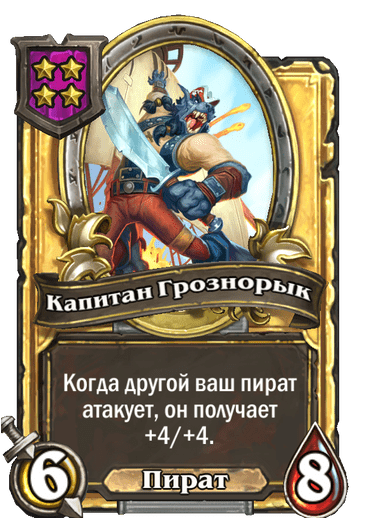 Капитан Грознорык даст много темпа столу даже с 2-3 пиратами, особенно если среди них есть Шалопайка и Йо-хо-хогр, которые часто реализуют бафф +2/+2 несколько раз за бой.