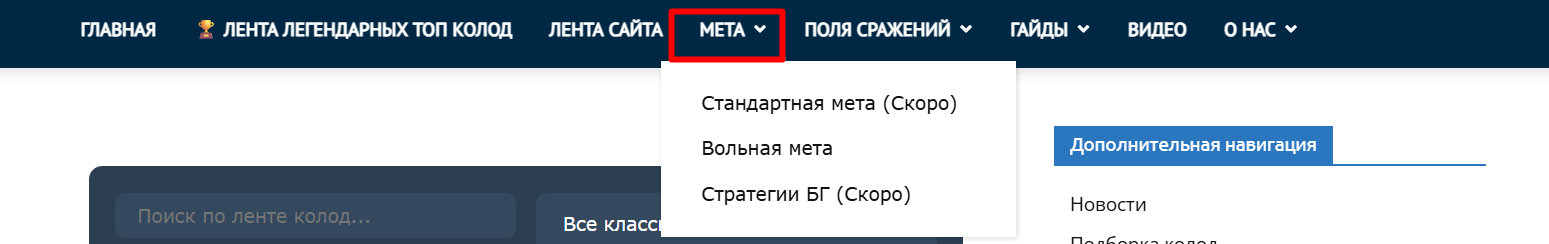 Вторая новость касается того, что в меню сверху вы уже могли обнаружить раздел мета. Там вы найдете вольную мету, и совсем скоро появятся: