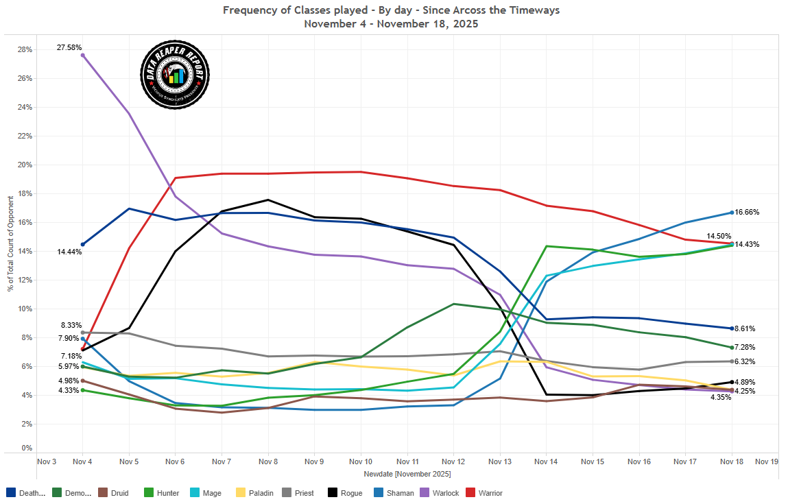 Изучаем мету дополнения «Сквозь потоки времени» после первых нерфов с мета-отчетом от Vicious Syndicate. Здесь вы сможете найти самые свежие метовые сборки, узнать о популярности классов, изучить таблицы матч-апов и сравнить силу различных архетипов Стандарта. В конце статьи вас ждут разрушители меты прошедшей недели.