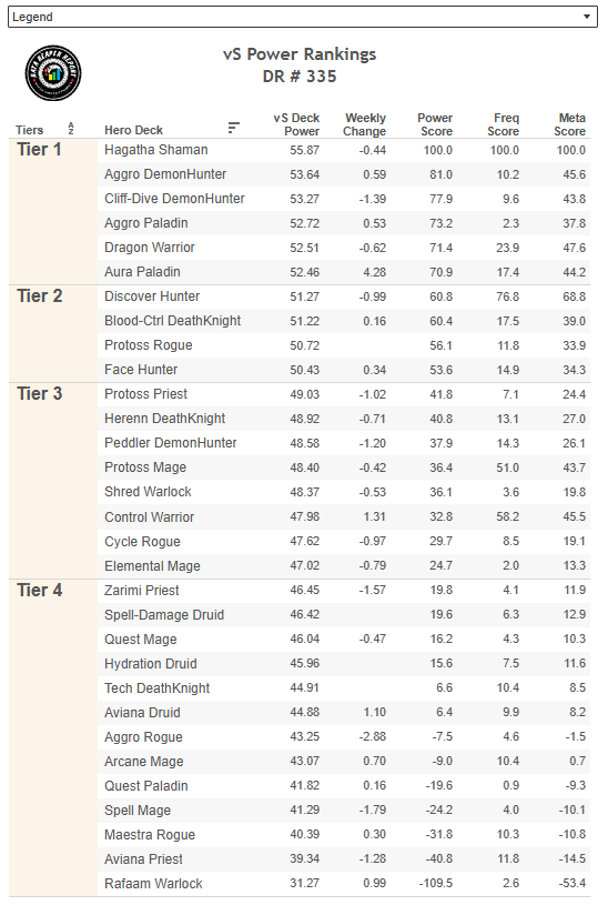 Темпо Шаман должен остаться доминирующей колодой на большинстве рангов. Пока что не существует архетипов, которые могли бы остановить его, поэтому он является лучшим выбором для взятия Легенды. Для этого подойдут и некоторые другие колоды, например Аура Паладин, но разрушить мету Шамана для большинства игроков никто не может.