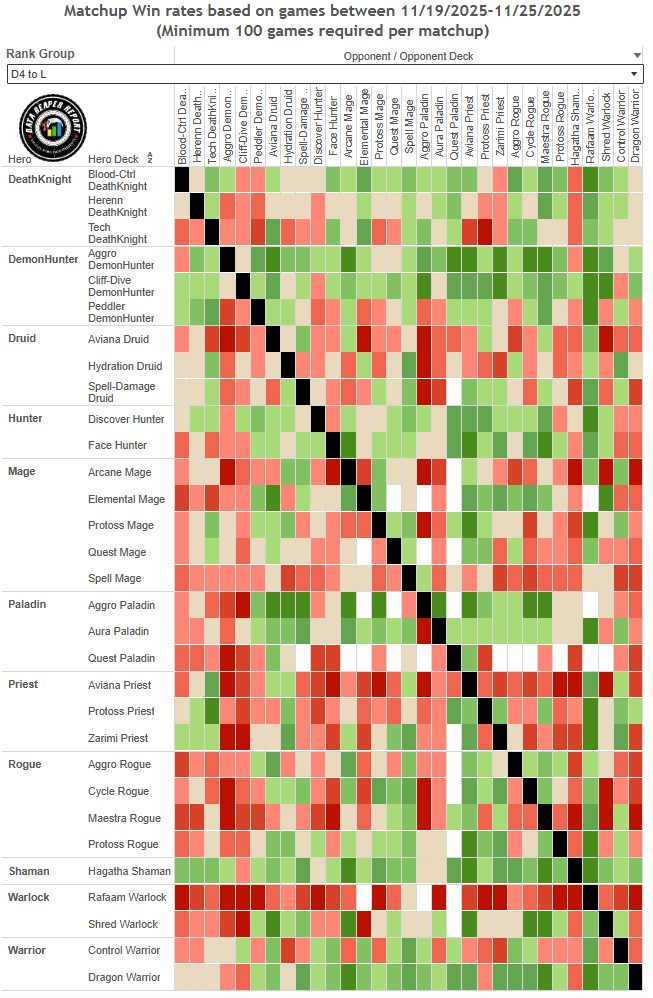 Появилась новая сборка Аура Паладина, которая разительно сильнее предыдущей. Она вызвала массовый скачок винрейт колоды на всех рангах игры. Аура Паладин стал по-настоящему хорошим выбором для повышения ранга, хотя можно предположить, что на высших рангах он провалится, поскольку не может оказать сопротивление паре Охотника и Шамана, особенно если у Шамана есть Сглаз.