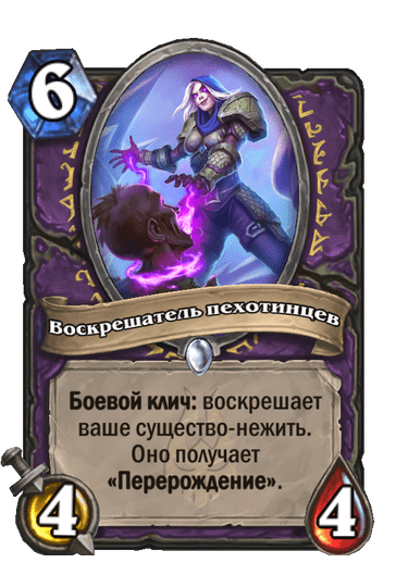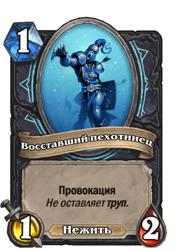 Рыцари смерти повелевают нежитью, и теперь эта способность доступна вам! «Нежить» — новый тип существ, который появится в игре с выходом дополнения, в том числе в уже существующих наборах. Многие карты нежити обладают эффектами, связанными со смертью, в числе которых возвращающееся в игру свойство «Перерождение»!