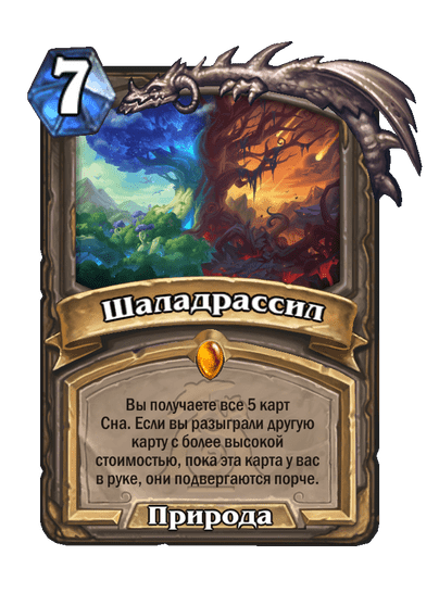 Изумрудный Сон — мир, в котором господствует магия природы. Из этого места черпают свою силу друиды, и здесь их тайные знания открыты всем. Впервые за историю Hearthstone у каждого класса появится карта со свойством «Выберите эффект». Такие карты позволяют использовать один из двух представленных эффектов. Выбирайте с умом!