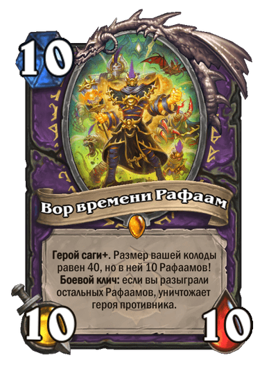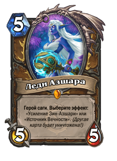 Вооружитесь силой легендарных героев из прошлого, будущего и альтернативных временных линий Warcraft. Легендарные карты со свойством «Герой саги» автоматически добавляют в вашу колоду дополнительные карты. Каждый класс получит героя саги, такого как Сильвана или Гелбин, взятого из уже знакомых или еще не изведанных временных линий.
