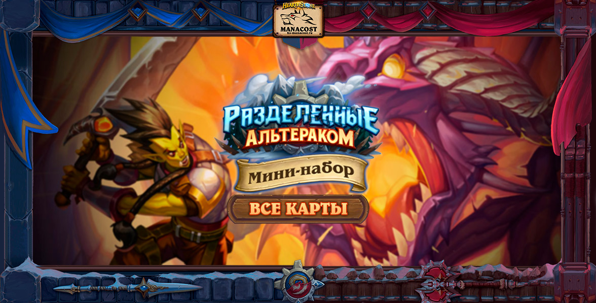 Мини-набор «Логово Ониксии», выход которого состоится 15 февраля, состоит из следующих 35 карт: 4 легендарные карты, 1 эпическая карта, 14 редких карт и 16 обычных карт. Все эти карты можно получить из комплектов карт дополнения «Разделенные Альтераком», или же вы можете приобрести весь набор из 66 карт за 14.99$ или 2000 золотых! Также мы впервые предлагаем приобрести золотые версии всех 66 карт мини-набора за $69.99!