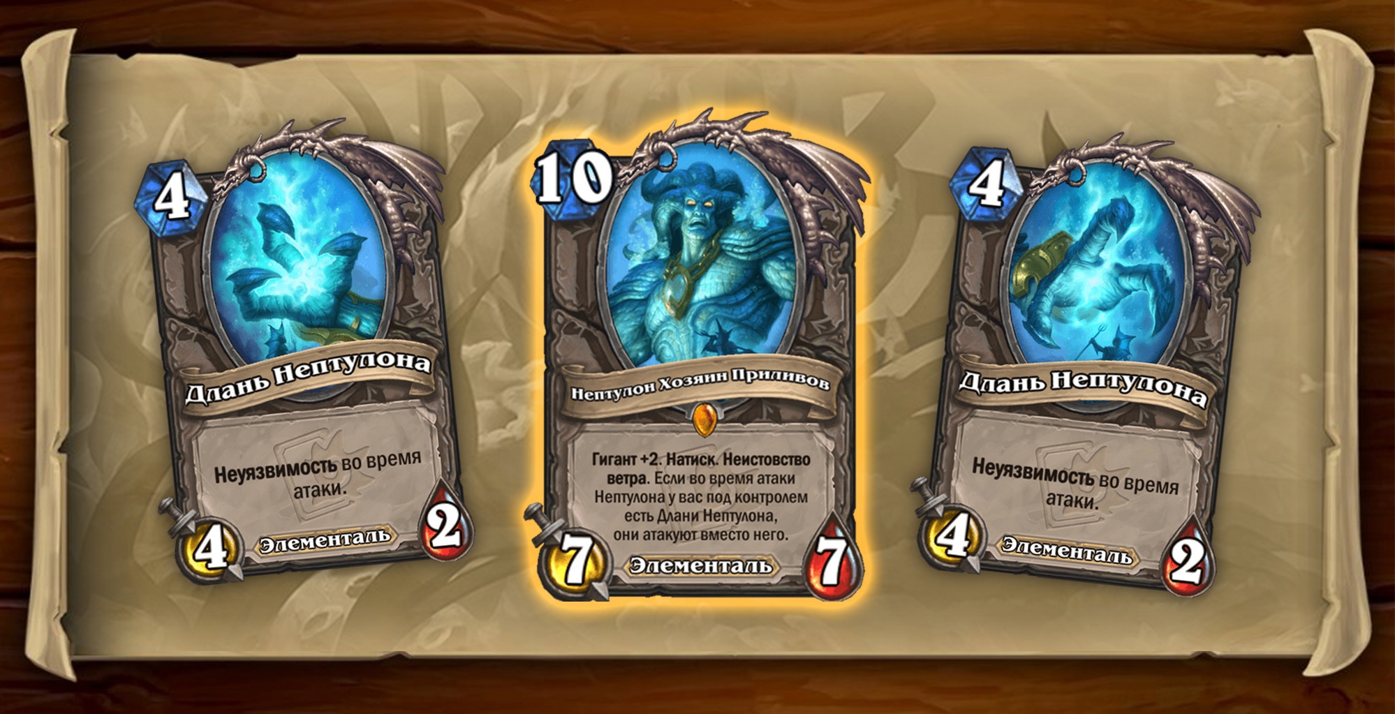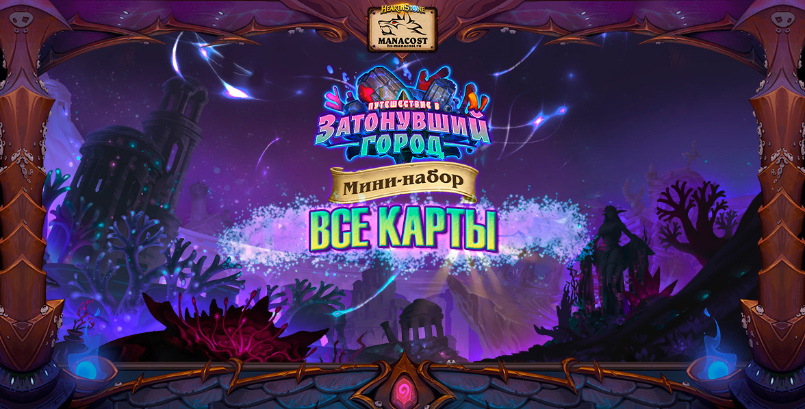 Мини-набор Трон Приливов содержит 35 карт*: 4 легендарных , 1 эпическую, 14 редких и 16 обычных. Всех их можно получить из комплектов карт дополнения «Путешествие в Затонувший город», или же вы можете приобрести весь набор из 66 карт за 2000 золотых или реальные деньги!